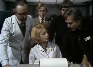 An early issue arises when Roy Collinson (Iain Cuthbertson) reveals that no work has been completed on the data storage room. Workmen have refused to get their hands dirty in there on account of it being haunted. The room is investigated and, indeed, certain members of the team hear a haunted scream. One member in particular, Jill Greeley (Jane Asher), seems strongly attuned to the haunting. She sights a ghostly vision of a petrified maid running up some stairs to her death.