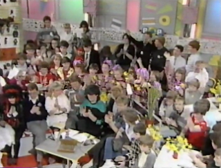 It's time for more get well messages for Mike Read, the kids really loved him back then (even if he had been a fusspot the year before and refused to play Relax by Frankie). As for Greene, well, her hair looks amazing here. The amount of hairspray involved probably put a hole in the ozone layer though. Nonetheless, there's an engaging personality bubbling away within Greene and I still maintain that she's the greatest primary school teacher that never was. Well, her and Chloe Ashcroft.