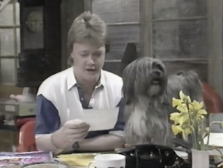 Every superstore needs a store detective and Saturday Superstore is no different, so please welcome Sherlock, a dog far too cute to do much more to a potential thief than nibble at its ankle. Such is the love for Sherlock that one viewer has submitted a curious drawing of Read and Sherlock. While Sherlock pads around on Chegger's desk in the warehouse, Cheggers deals with some complaints from the viewers.