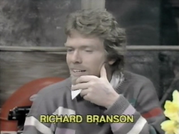 Cheggers is back in the warehouse and, with him, is multi-million pound entrepreneur, Richard Branson. However, far from being a confident businessman, Branson is ridiculously nervous and awkward here. He's also wearing an incredibly dull 80s jumper. Branson is here to discuss his attempt to claim the Blue Riband trophy for crossing the Atlantic in the quickest time. Instead, he mostly mumbles, trips over his words, giggles and plays with his face.